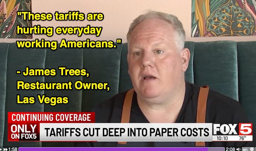 Each week, he places an order for paper products at his restaurants. It’s gone up $700 a week with the Trump Tariffs because most manufactured paper products come from Mexico, Canada and China.